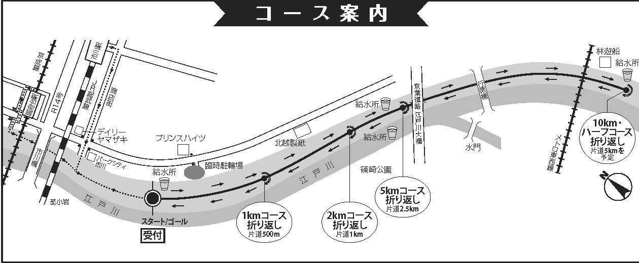 | 日程 | 受付開始 8:00 (各種目の20分前まで) ※リレーマラソンは10:40~ 開会式 8:30 競技開始 親子ペアマラソン・・・9:15 ミニマラソン・・・9:30 10km・・・9:50 5km・・・10:05 ハーフマラソン・・・10:15 リレー・・・12:50 各競技終了後、随時予定 閉会式 全競技終了後予定 |